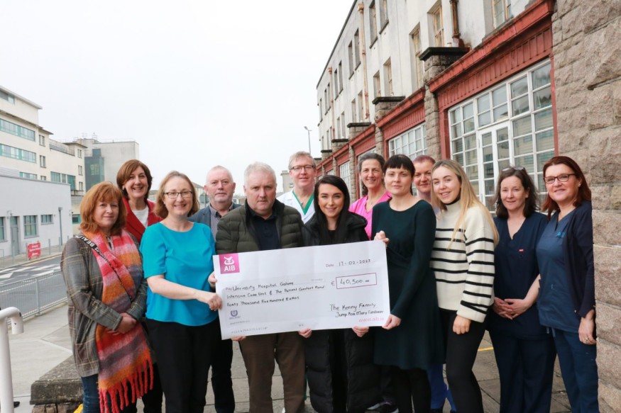 An extremely generous donation of €40,500 was recently presented to the Intensive Care Unit and the Patient Comfort Fund at University Hospital Galway, raised in memory of the late Mary Kenny.
